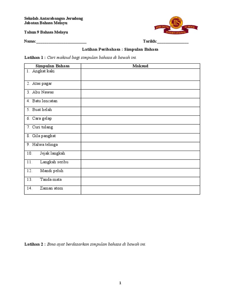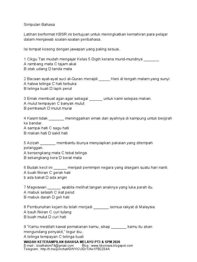 Latihan Jawapan Simpulan Bahasa 1 Pdf